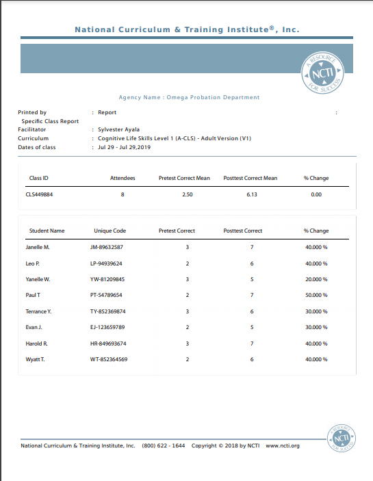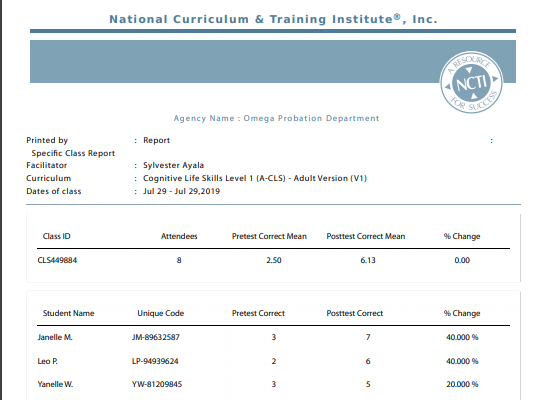 By ensuring that the cognitive curriculum is delivered properly, and participants are increasing their knowledge in important pro-social skills, an agency will be more successful in empowering behavior change. Conversely, if low scores are seen in certain skill areas, agencies are then able to work with their facilitators to improve in those areas.